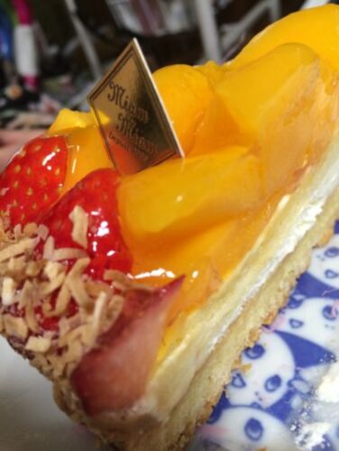 お気に入りのタルトを食わす、ミャムミャム(変な名前) フルーツタルトのミャムミャム MiamMiam 美味いマンゴータルトが帰ってきたー。去年は中にパインが混ざってて、パインの酸味にマンゴーが負けてしまっていたのですよ。今年はイチゴがトッピングされて…