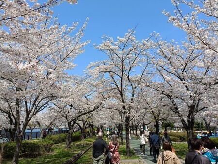その後は桜ノ宮界隈の川端をタラタラと歩きつつ花見。ちょうど身頃ですな。南の方がスペース的な余裕があって、北に行くほど場所取りが厳しく。まぁ、歩いて北上してたので、どんどん花見客が増えてきただけかもしれませんが。