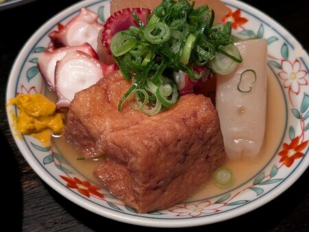 で、色々食った食った。ベースはおでんの店っぽいんですが、何故か魚が美味い。ゲソ焼きとかえらく美味い。初めて職場の飲み会でお腹いっぱいになるまで食えたかもしれん。で、一人5000円くらいですんで、京都という場所を考えれば結構良心的。いやー、いい店だった。